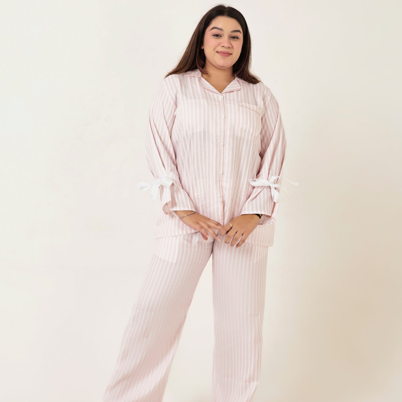Finished with buttons that add a touch of charm — and yes, they’re locked so you never have to worry about those awkward gaps between buttons. and white satin tie-up sleeves that can be adjusted into adorable bows — because comfort should always come with a touch of cute. Thoughtful details, dreamy comfort.