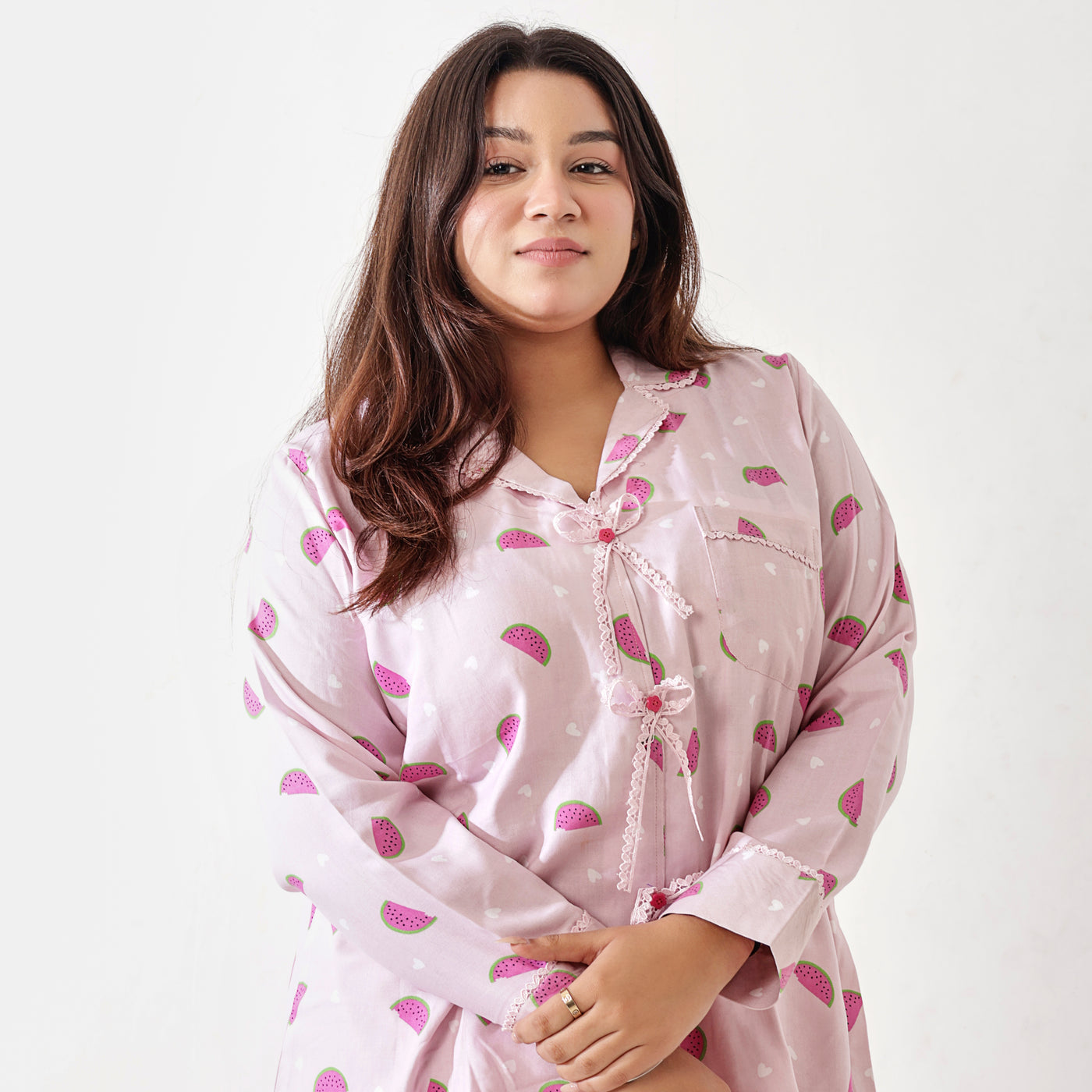 Finished with handcrafted bow-shaped buttons that are fully packed to prevent any gaps (because comfort should never come with awkward moments!). The look is completed with delicate pink lace along the neckline and sleeves, adding the prettiest feminine touch to your cozy favorite. ✨